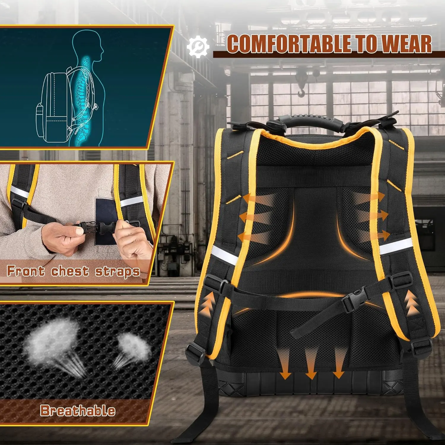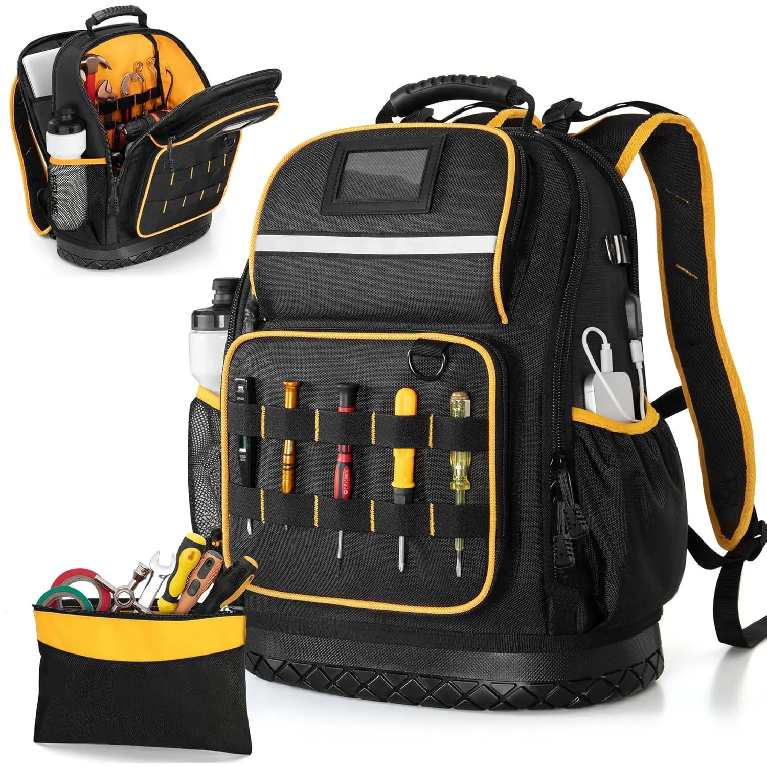 Tool Backpack Hard Bottom Tool Pouch Heavy Duty Tool Bag Organizer Rubber Base Electrician Plumber Maintenance Worker Tool Bags